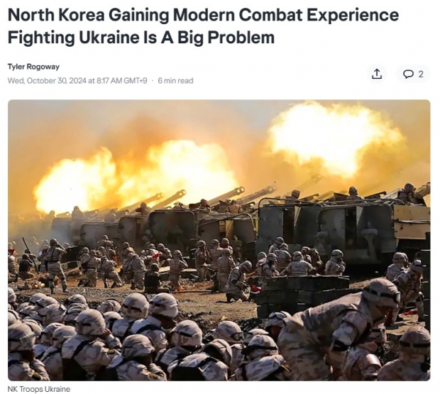 ‘더 워 존(The War Zone)’은 30일 기사에서 “러시아와 우크라이나 간의 분쟁에 북한이 개입하는 경험 측면은 “병력 유입이 크렘린궁의 대의에 미칠 수 있는 즉각적인 영향에 더 초점을 맞추고 있기 때문에 종종 간과되고 있다. 러시아가 큰 손실을 입었고, 우크라이나도 큰 손실을 입었기 때문에 이는 원칙적으로는 이해할 수 있다.”고 말했다.
