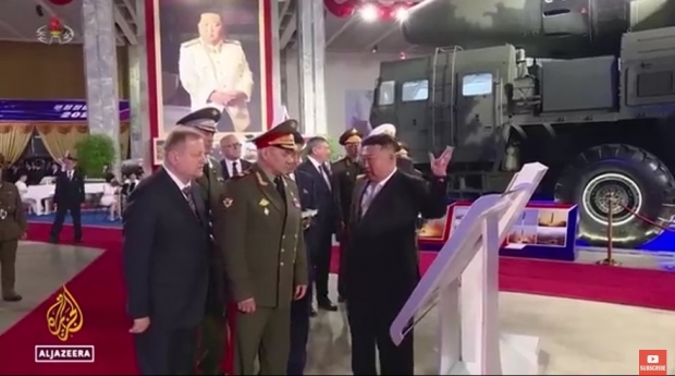 러시아 군부 인사를 맞이하는 김정은 북한 국무위원장 / 사진=알자지라 캡처