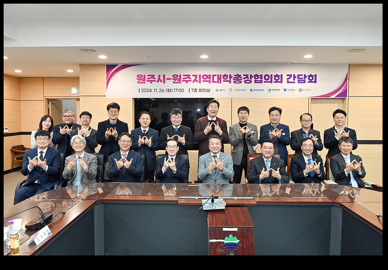 원강수 원주시장과 2024년 원주지역 총장협의회 회장 박덕영 국립강릉원주대학교 총장을 비롯해 전재섭 부시장, 강릉원주대, 경동대, 상지대, 연세대 미래캠퍼스, 한라대의 주요 관계자들이 참석했다.