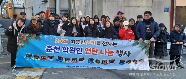 강원 춘천시 학원연합회(회장 황석우)는 지난 111일 오전 10시 춘천 금강로 13번길 21에 자리잡고 있는 VIP모텔 사거리에서 사랑의 연탄 봉사 활동을 펼쳤다.