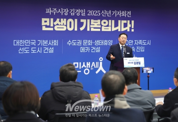 김경일 파주시장이 16일 2025년 신년 기자회견을 열고, “민생이 기본입니다!”를 모토로 2025년 3대 시정 목표와 구체적인 실행계획을 밝혔다.