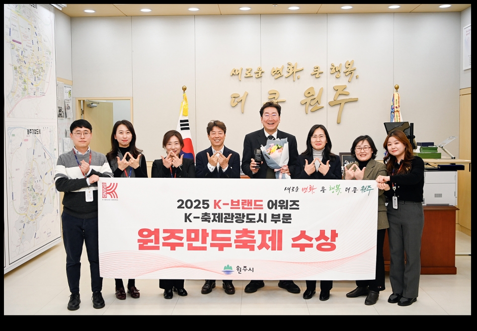 원주시는 지난 19일 더 플라자 호텔 서울 그랜드볼룸에서 개최된 ‘2025 K-브랜드 어워즈’에서 원주만두축제 브랜드로 K-축제관광도시 부문에서 수상하는 영예를 안았다.