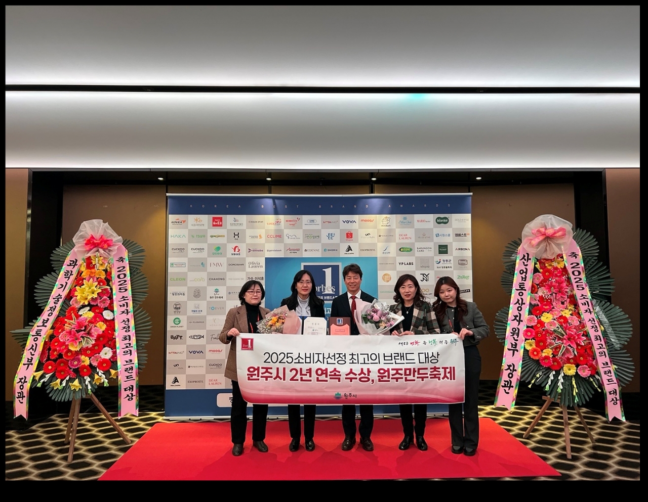 원주시는 27일 더 플라자 호텔 서울에서 열린 ‘2025 소비자선정 최고의 브랜드 대상’ 시상식에서 ‘원주만두축제’로 2년 연속 지역음식문화축제 부문 대상을 수상하는 영예를 안았다.
