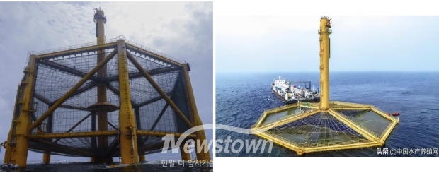 중국이 서해 한중 잠정조치수역에 설치한 해상 철골 구조물. 각 구조물의 직경은 70m가 넘고 높이는 71m에 달한다./중국수산양식망. X
