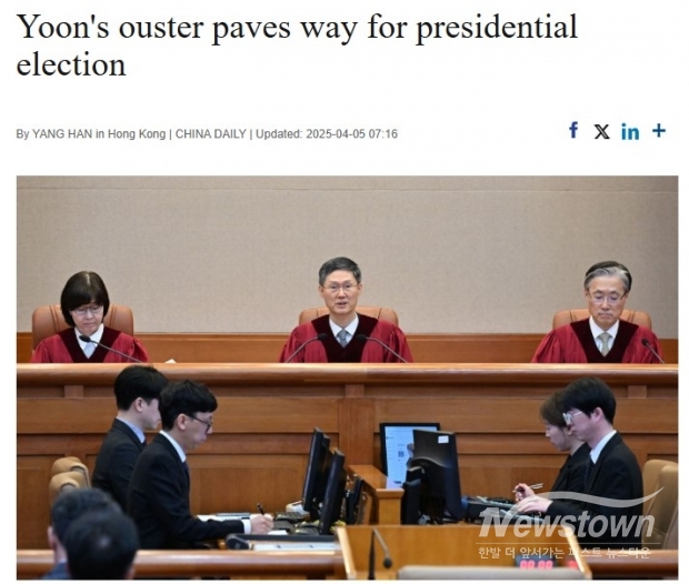 차이나 데일리 : “윤석열 파면, 한국 정치 지형 변화, 양극화는 과제”