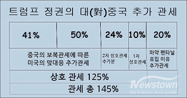 트럼프, 대중(對中) 추가 관세 125% → 총 145%로 수정 상향