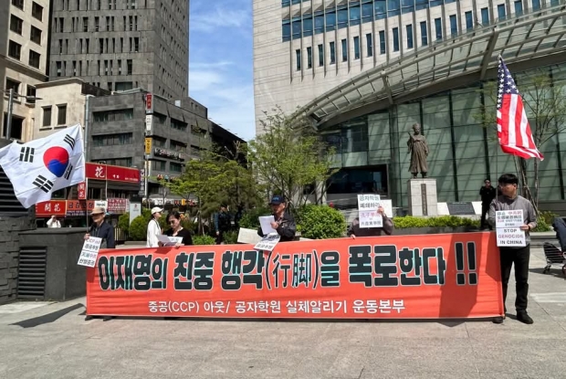 ‘중공아웃(CCP아웃)’과 ‘공자학원 실체알리기 운동본부(공실본)’는 23일 오후 2시 중국대사관 앞에서 기자회견을 열고 이재명 더불어민주당 전 대표에게 간첩법 개정안에 대한 공개 입장을 촉구했다.