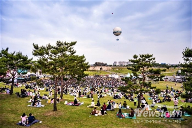 연무대는 정조대왕의 친위대인 장용영 군사들이 무예를 연마하던 훈련장으로 사용된 넓은 공간으로, 푸른 잔디밭이 시원하게 펼쳐진다. 사시사철 연날리기와 활쏘기를 즐기는 사람들이 찾아오고, 인근 주민들이 산책과 여유를 즐기는 사람들이 자유롭게 이용하고 있으니 여유로운 분위기를 느껴보기 좋다.