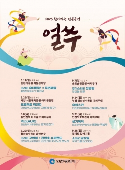 인천광역시는 5월부터 9월까지 인천시 전역에서 총 8회에 걸쳐 찾아가는 전통공연 ‘얼쑤’를 개최한다고 밝혔다.
