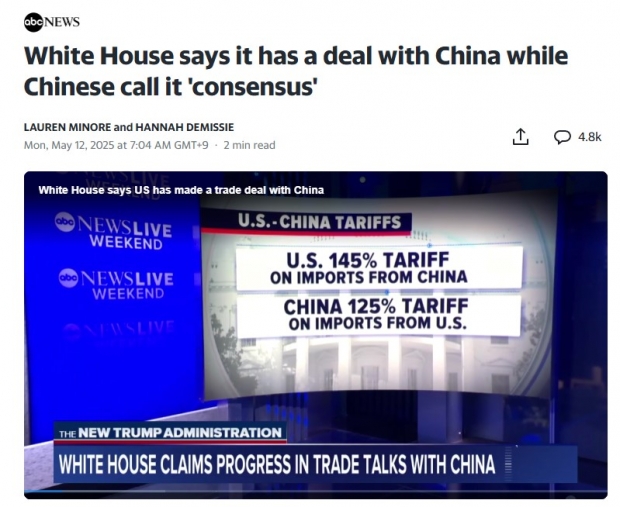 미중 스위스 관세관련 협상 / 사진=abc 뉴스 일부 보도 캡처