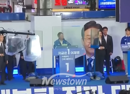'3면 방탄유리' 뒤에서 연설 중인 이재명 더불어민주당 대선후보/채널A