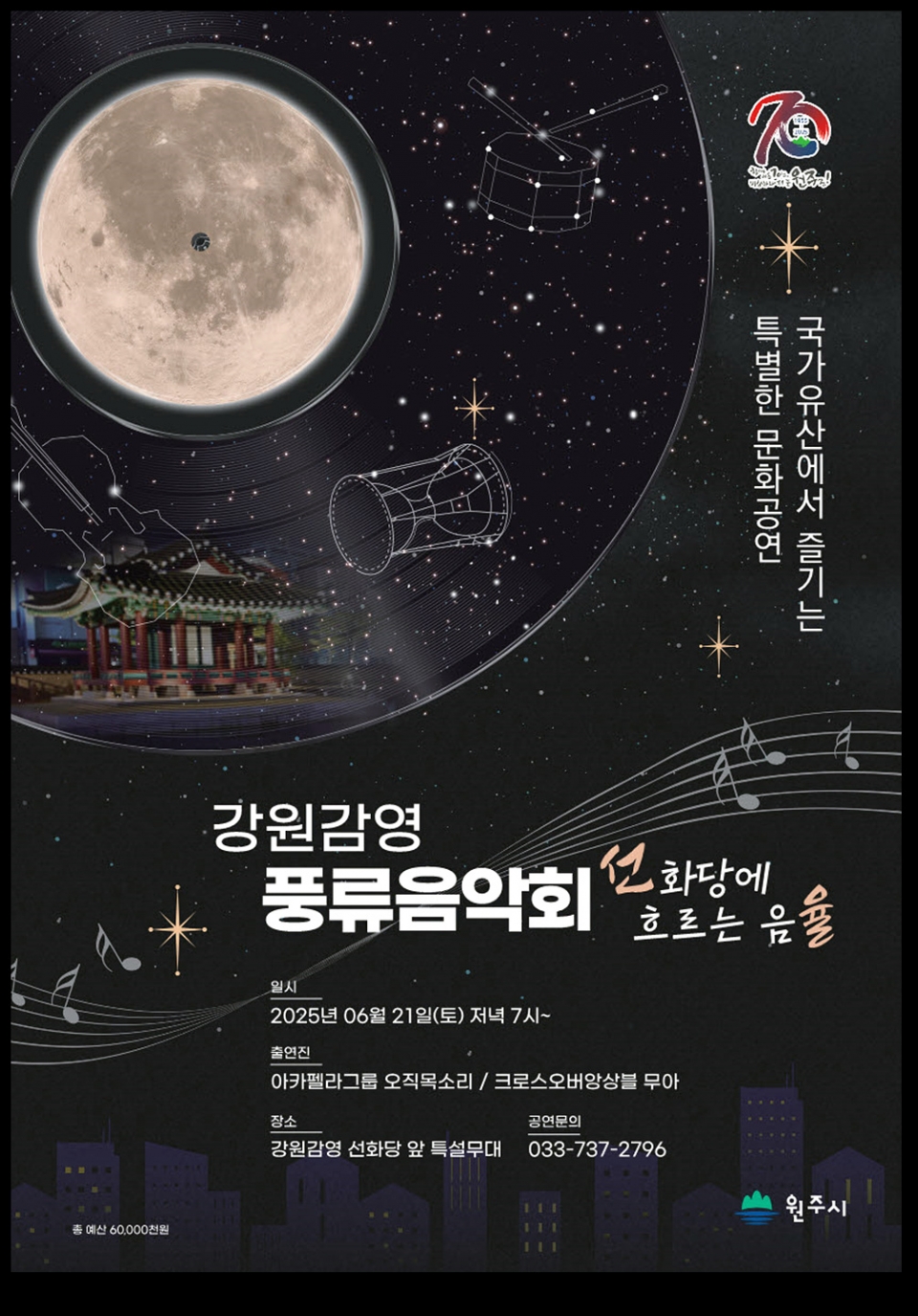 원주시역사박물관은 오는 21일(토) 오후 7시부터 강원감영 선화당에서 ‘강원감영 풍류음악회’ 1회차 공연을 개최한다.