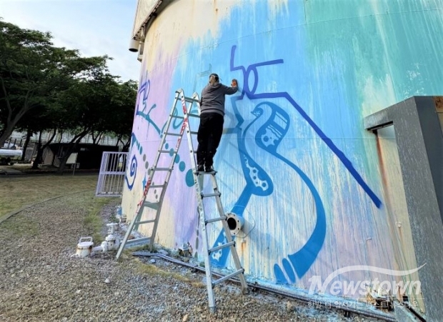 [뉴스타운/송은경 기자] 시흥시 맑은물상상누리의 대형 가스통이 그래피티 작품으로 변신했다. 스페인의 유명 그래피티 작가 2인이 맑은물상상누리의 놀이통 외벽을 캔버스 삼아 개성 가득한 대형 그래피티 작품을 선보인 것이다.