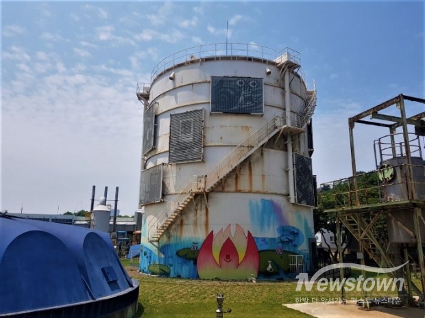 이번에 그래피티 작업이 진행된 놀이통은 이중 과거 가스저장소로 활용하던 공간이다. 외벽에는 방현우 작가의 대형 설치미술 작품이 배치되어 있는데, 수년이 지나며 곳곳에 녹이 슬었다. 이런 질감 위에 그래피티 벽화가 추가되면서 높이 17m, 지름 15m에 이르는 대형 가스통의 외벽이 그 자체로 거대하고 빈티지한 미술관이 됐다.