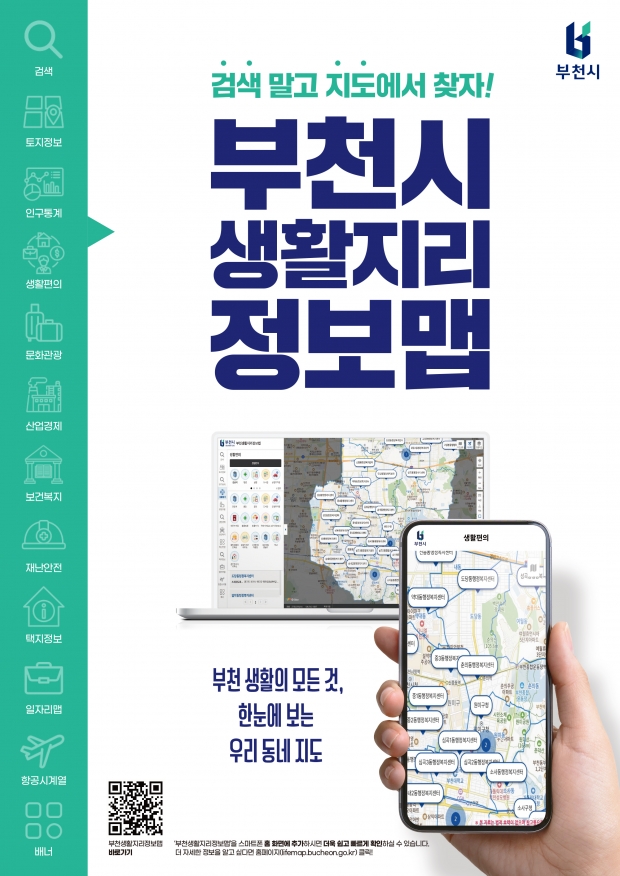아울러 시는 실생활에서 모바일 등을 통해 각종 공간정보를 쉽게 확인하고 활용할 수 있는 ‘부천생활지리정보맵’도 구축해 서비스를 시작했다.