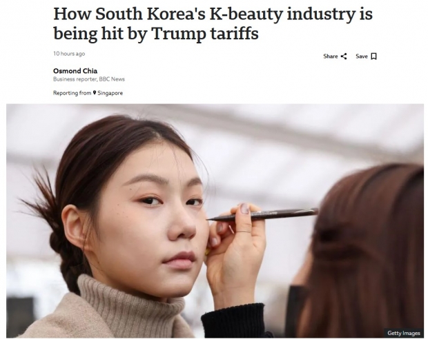 K-뷰티는 한국의 다양한 스킨케어, 메이크업, 화장품을 포괄하는 용어로, 품질과 가치 면에서 칭찬을 받으며 최근 몇 년 동안 수요가 급증했다고 영국의 BBC 뉴스가 3일 보도했다. 그러면서 BBC는 트럼프 관세로 K-뷰티 산업이 타격을 받는다고 보도했다.