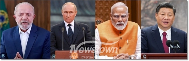 왼쪽부터 룰라 브라질 대통령, 블러디미르 푸틴 러시아 대통령, 나렌드라 모디 인도총리, 시진핑 중국국가주석