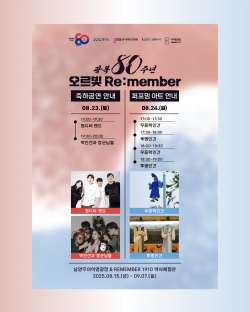 한편, ‘오르빛 리멤버(오르빛 Re:member)’는 9월 7일까지 이석영광장과 REMEMBER 1910 역사체험관에서 무료로 운영된다. 전시 관련 문의는 시청 문화예술과 문화정책팀(031-590-7326)으로 하면 된다.