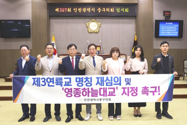 중구의회는 9월 11일 결의문을 통해 최근 인천광역시 지명위원회가 제3연륙교 명칭을 ‘청라하늘대교’로 결정한 것에 대해 재검토가 필요하다며 강한 유감을 표명했다.