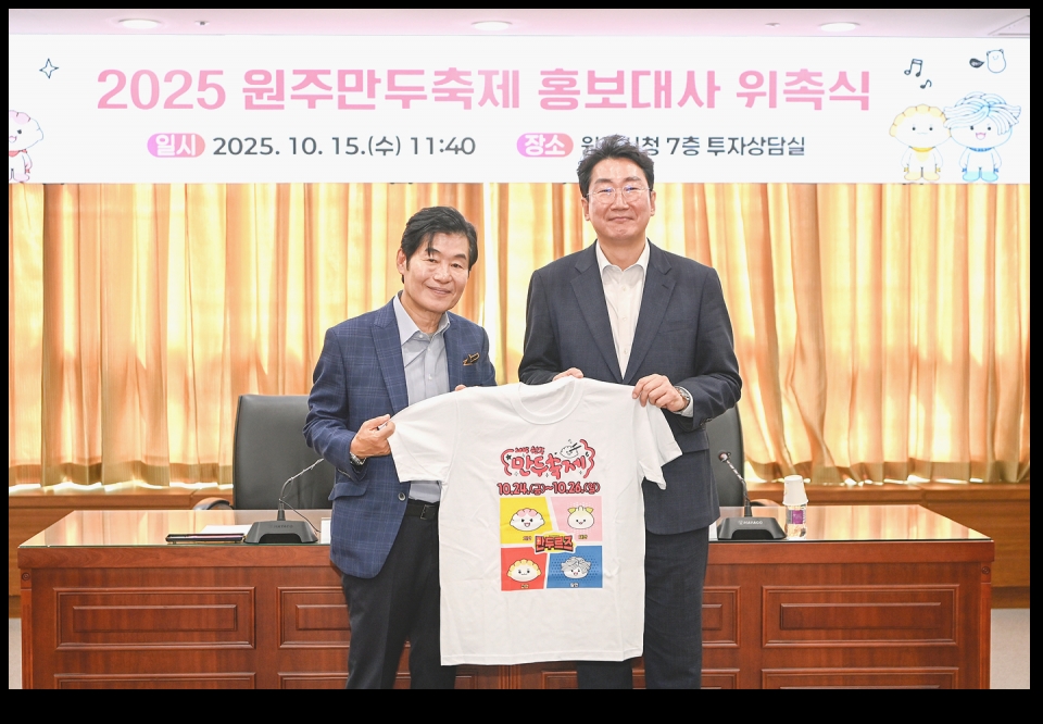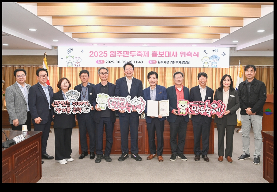 원주시는 오는 10월 24일(금)부터 10월 26일(일)까지 3일간 열리는 '2025 원주만두축제'의 성공적 개최를 위해, 10월 15일(수) 이연복 셰프 홍보대사 위촉식과 축제 최종 보고회를 잇달아 개최했다고 밝혔다.