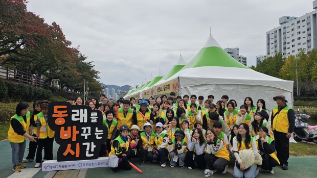 동래구자원봉사센터는 8일 온천천 카페거리에서 시민 참여형 축제 ‘자원봉사에 물들 가을’을 개최했다. 맑은 가을 하늘 아래 열린 이번 행사는 자원봉사와 반려문화가 어우러진 참여의 장으로, 온천천 산책로가 시민들의 활기로 가득 찼다.