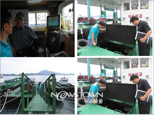 | ^^^▲ 현장 점검 중인 목포지방해양항만청현장점검 중 조타신 ,통신장비,접안장, 기름저장탱크등 점검실시^^^ | ||