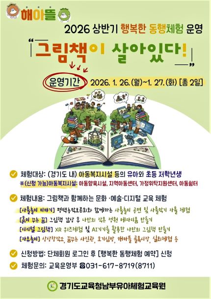 [뉴스타운/김병철 기자]경기도교육청남부유아체험교육원은 유아와 아동의 문화·예술·디지털 교육 접근성 확대와 교육복지 실현을 위해 ‘2026 상반기 행복한 동행체험’을 운영한다고 14일 밝혔다.