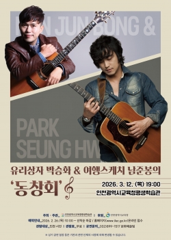 인천광역시교육청평생학습관은 3월 12일 교육누리홀에서 ‘유리상자 박승화 & 여행스케치 남준봉’ 음악 공연을 개최한다고 밝혔다.