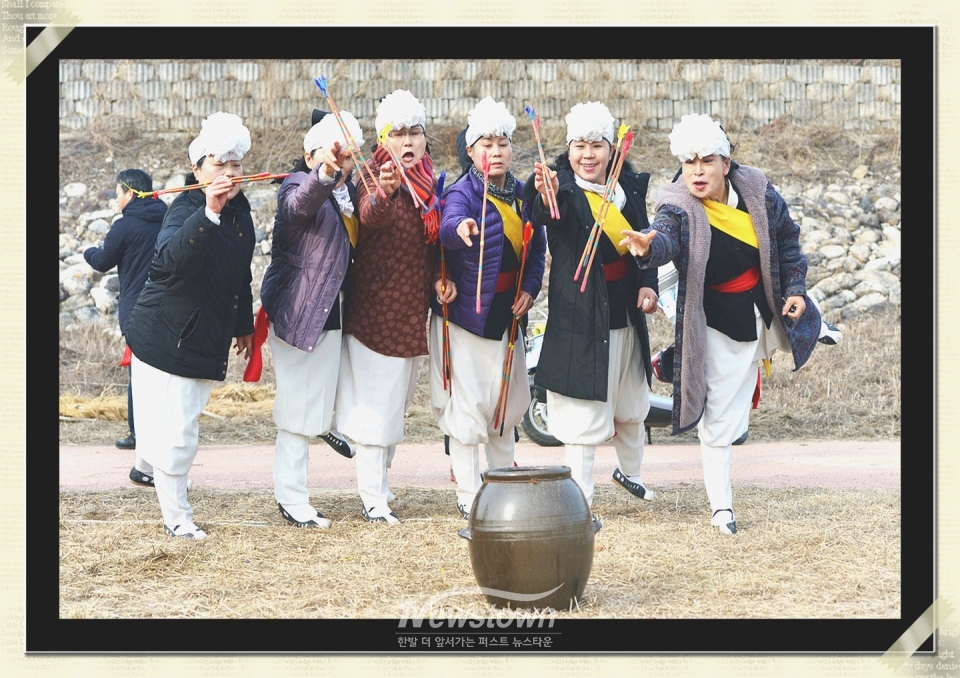 행사장에서는 아이들과 어른이 함께 투호놀이를 즐기며 웃음꽃을 피웠다. 긴 대나무 통에 화살을 던져 넣는 투호놀이는 집중력과 협동심을 기르는 전통놀이로, 널뛰기로 하늘을 나는 짜릿한 가슴을 느끼며 명절의 흥을 더했다.