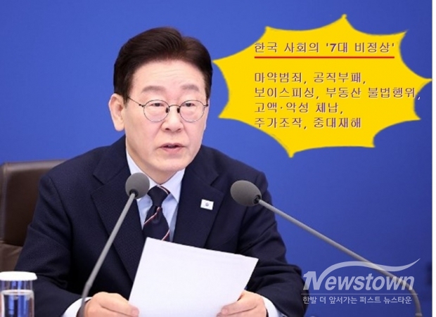 이재명 대통령은 한국 사회의 “7대 비정상을 제시하며, 제도 정비와 집행에 속도를 내달라고 주문했다.