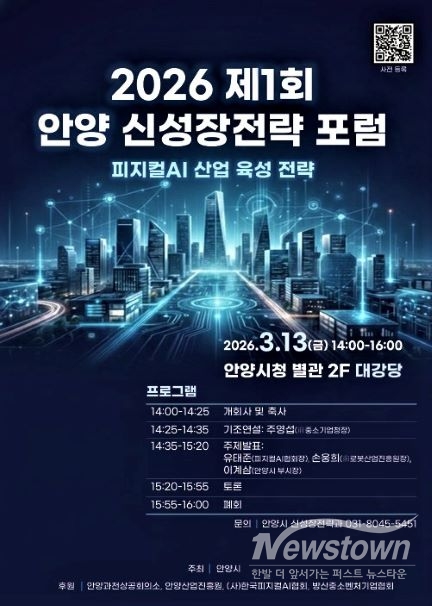 안양시는 오는 13일 오후 2시 안양시청 별관 2층 대강당에서 ‘2026 제1회 안양 신성장전략 포럼’을 개최한다.