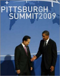 | ^^^▲ 주요 20국(G20)정상회의가 열리는 미국 피츠버그 회의장에서 이명박 대통령(왼쪽)과 오바마 미국 대통령 ⓒ Reuters^^^ | ||