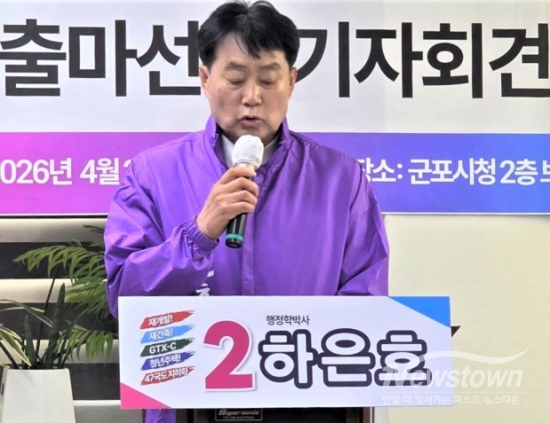[뉴스타운/송은경 기자] 하은호 국민의힘 군포시장 예비후보가 28일 오전 군포시장 선거 출마를 공식 선언하며 재선 도전에 본격 돌입했다. 이번 출마 선언은 단순한 재선 도전이 아니라, 지난 4년간 추진해 온 도시 대전환 사업을 완성하겠다는 연속성의 메시지에 무게가 실렸다.