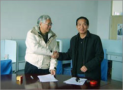 ^^^▲ 흑룡강성 오상쌀 초다수확 재배실험 기술제휴식(2009.3)제휴에 서명한 소원도작합작사 김경택 대표와 대만 생물기술센터 홍금민 대표^^^