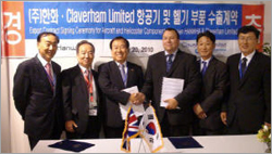 (주)한화(대표이사 남영선)는 7월 20일 오전 10시(현지시각)에 영국의 세계적인 항공기 구동장치 전문업체인 클래버햄(Claverham)社와 항공기/헬기용 유압부품 등의 공급에 대한 약 500억원 규모의 수출계약을 체결하였다.