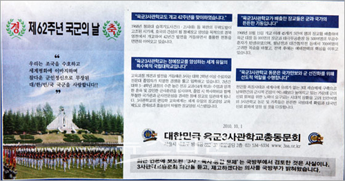 | ▲ 어느 조간신문 하단에 육군 3사관학교 동창회가 낸 초라한 62주년국군의날 경축 광고 | ||