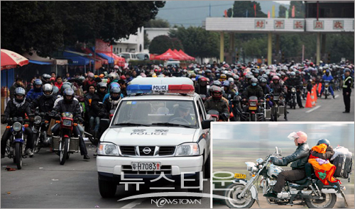| ^^^▲ 중국 농민공들의 오토바이 귀향 행렬이들은 보통 5백km에서 1천5백km를 달려 고향을 찾아간다. ⓒ 뉴스타운 이동훈^^^ | ||