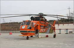 ^^^▲ 산불총력 대응을 위해 대형헬기 배치산불킬러인 초대형헬기(s-64e)가 산불출동을 위해 계류장에 비상대기