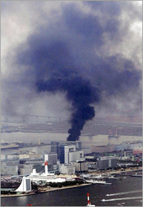 | ^^^▲ 도쿄 미나토 지역의 한 건물에서 지진으로 대형 화재가 발생, 화염기둥이 피어 오르고 있다. ⓒ 일본 요미우리신문^^^ | ||