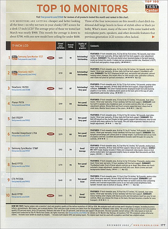 17" LCD모니터 미국 PC WORLD의 올해 최고의 제품 등 평가도 최고