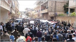 수만 명의 시위대들은 시위 도중 사망한 사람의 장례식을 치르며 민주화 요구 시위를 하는 가운데 시리아 보안군들이 시위대를 향해 무차별 총격을 가해 2일 만에 무려 120명 이상의 시위 참가자들이 사망하는 사상 초유의 사건이 발생했다.