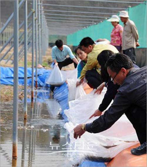 | ^^^▲ 남원시 농업기술센터, 미꾸리 인공부화 치어를 양식 농가에게 분양 ⓒ 뉴스타운 박혜숙^^^ | ||